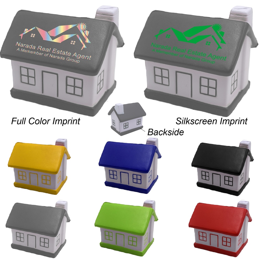 Squeeze your customer’s tension away, and make them feel the warmth of home by handing out this cottage shaped stress relievers! This cottage shaped stress reliever is made of PU foam, and returns its original shape after squeezing. It is great for real estate, house agent, construction, house improvement and so much more! Personalize this cottage shaped stress reliver by imprint your logo by pad imprint or your graphic by full color imprint on the roof of the house to promote your brand while keeping your customer’s tension away!!