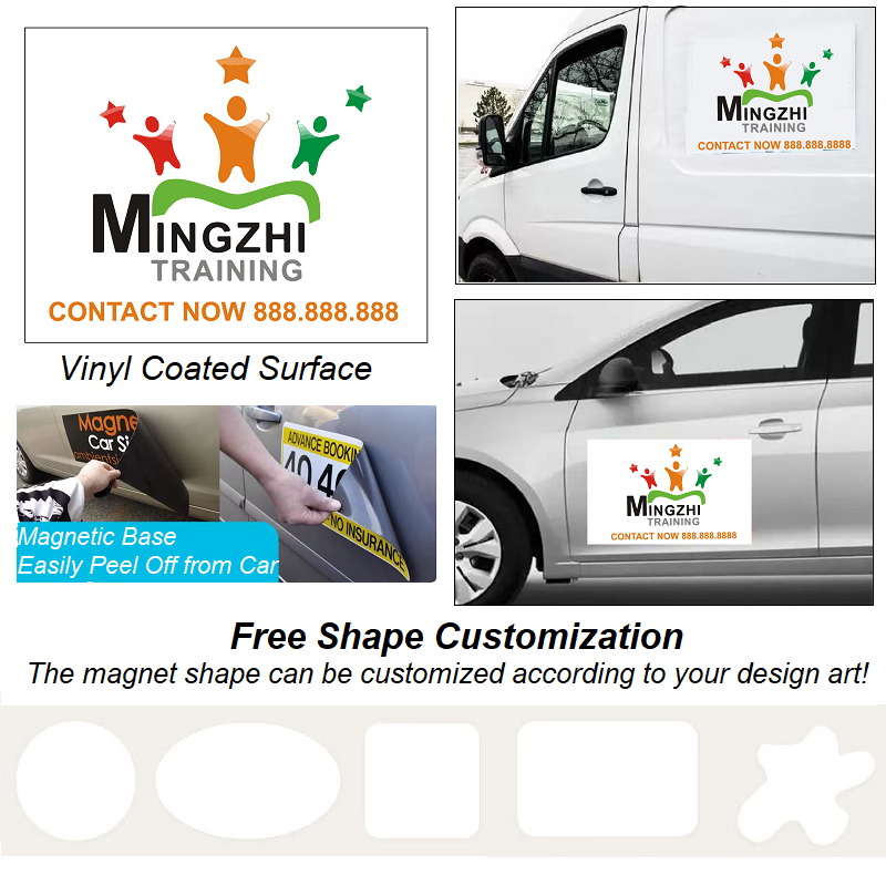 Magnets are made with 30-mil thickness, and your text or graphic are printed a white or gray vinyl surface, and optional reflective PET surface is also available. The magnet shape and imprint on the magnet can be customized according to your personal art design.it is a great way to show your message on the go with these magnets. Print your graphic on these magnets to create an effective and affordable way to advertise your business on the go!