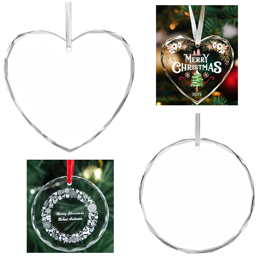 Let your brand spend the holiday season with your customers by handling out these imprinted glass ornaments! This hanging ornament is made of crystal glass, and features smooth beveled edge. Available in heart shape and round shape. Shape customization is also available. The smooth surface of the ornament provides perfect space to get your logo or graphic etched or full color imprinted on them to show off your brand around the holidays!