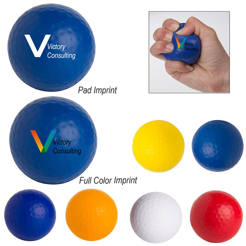 Use this golf ball stress reliver to take the stress out of a bad shot! It measures 2-1/2" diameter, and features dimpled surface. It is a perfect item for golf outings, golf tournaments, sports camps, mini golf courses and so much more. Add your company logo or image to this golf ball stress reliever to boost your brand with them!