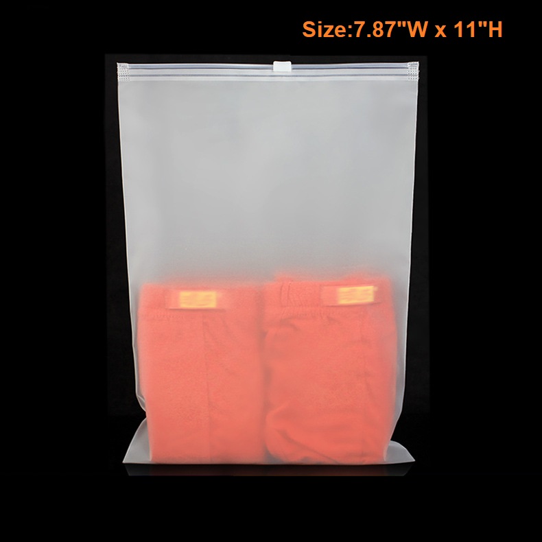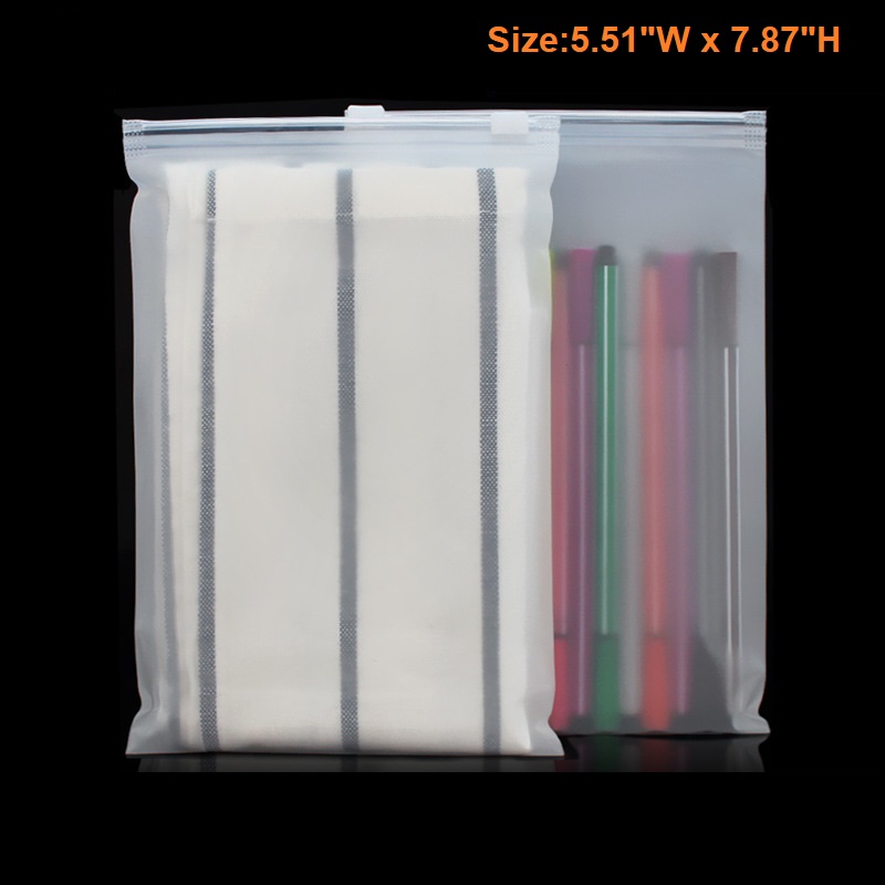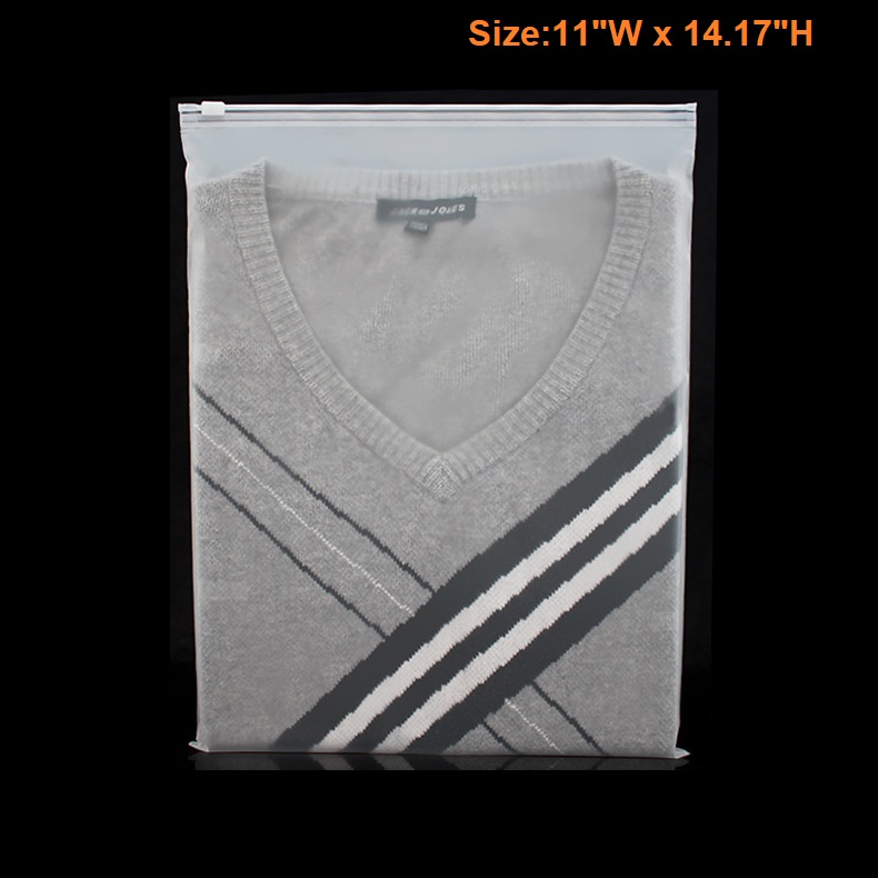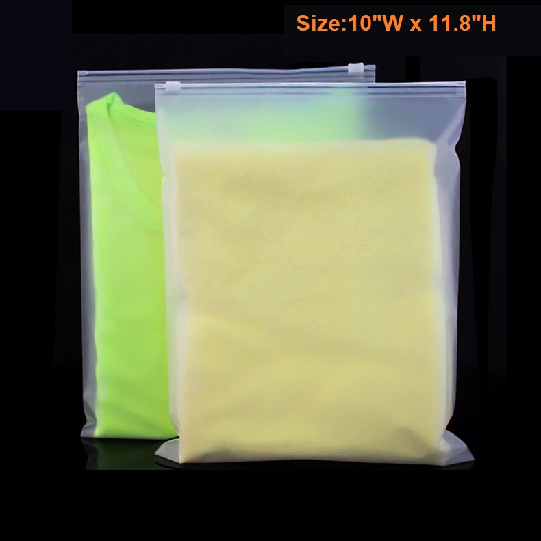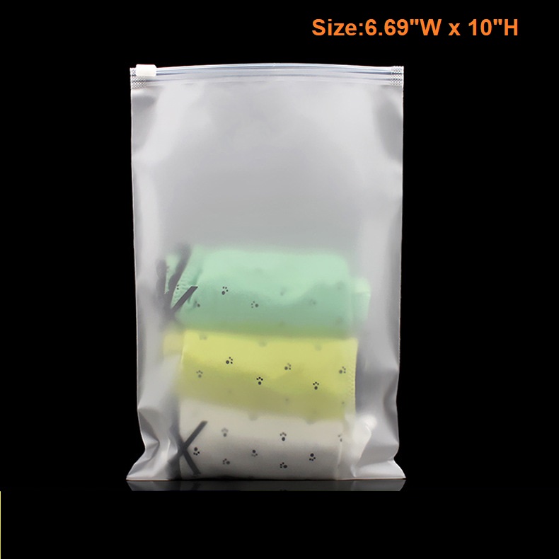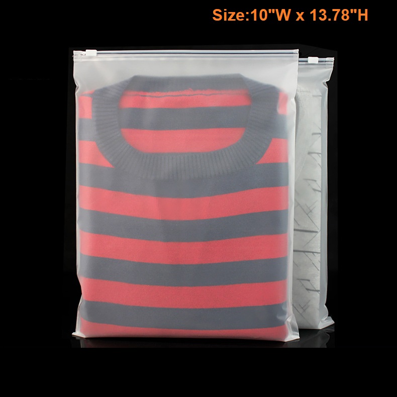 This Frosted Zipper bags are made of CPE material, that is eco-friendly and high quality. It features moisture proof, dust proof, zipper slide seal, reusable. It is perfect for storing, displaying and protecting all kinds of products like clothes, art prints, craft supplies, hardware etc. They are available in a wide variety of sizes for choices. Size customization is also available. Personalize these frosted zippered bags by printing your logo on them to get your brand exposed to them who use these bags!