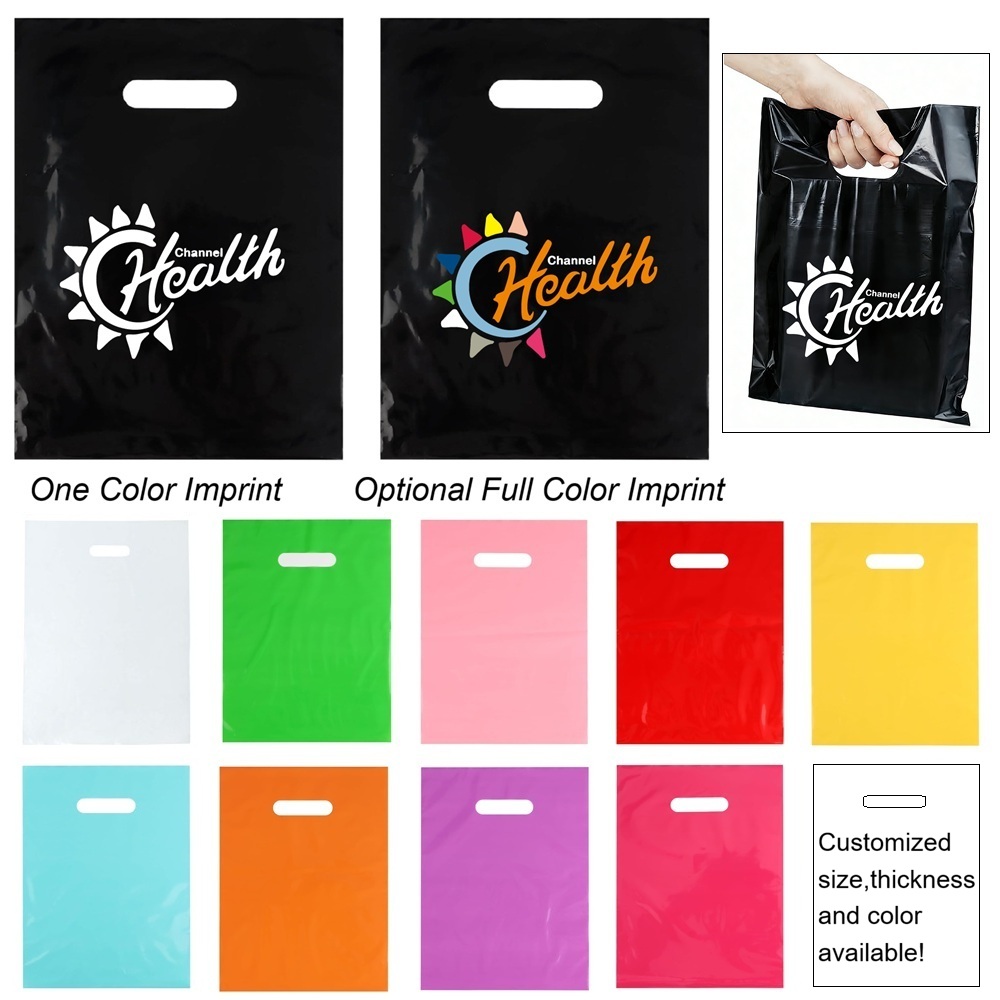Let your brand be carried away with these colored plastic bags by your customers! The colored plastic bags are designed with a die cut handle for easy carrying. They are great for a variety of events, special occasions and daily business. With countless uses in almost any industry, this merchandise bag will be constantly on the move as your promotional message travels with it everywhere far and wide! The bag size, thickness and color can be customized as per request!